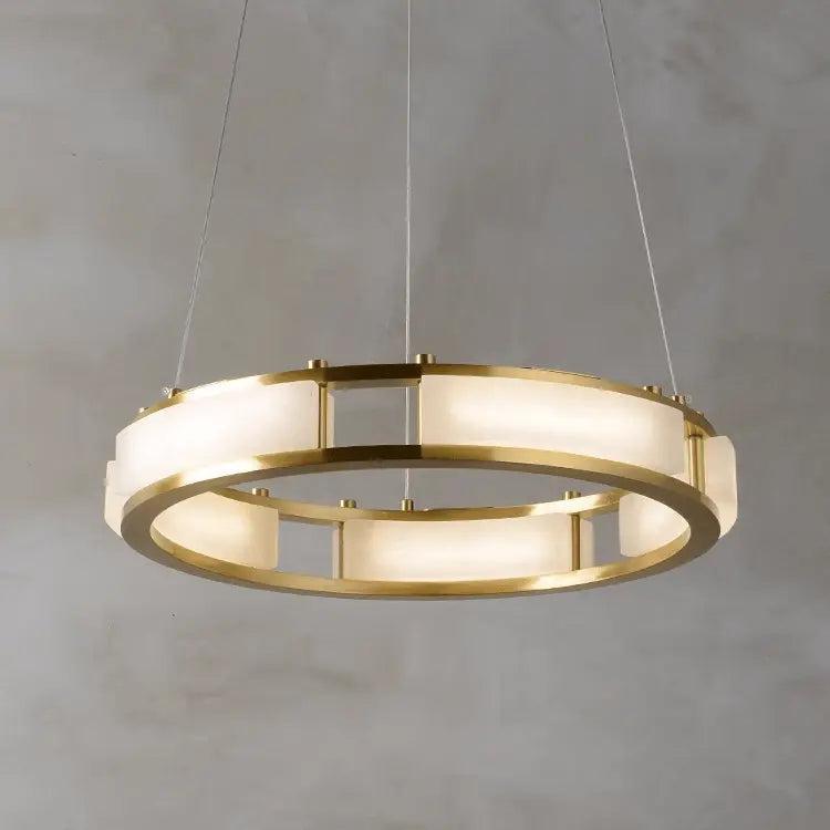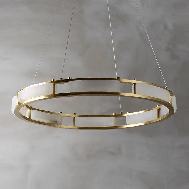 | This Spain Alabaster Brass Round Chandelier Lighting is ideal for adding a touch of traditional elegance to any room. Its robust brass and majestic alabaster finish make for a timeless classic. Illuminate any space with this eye-catching chandelier. |