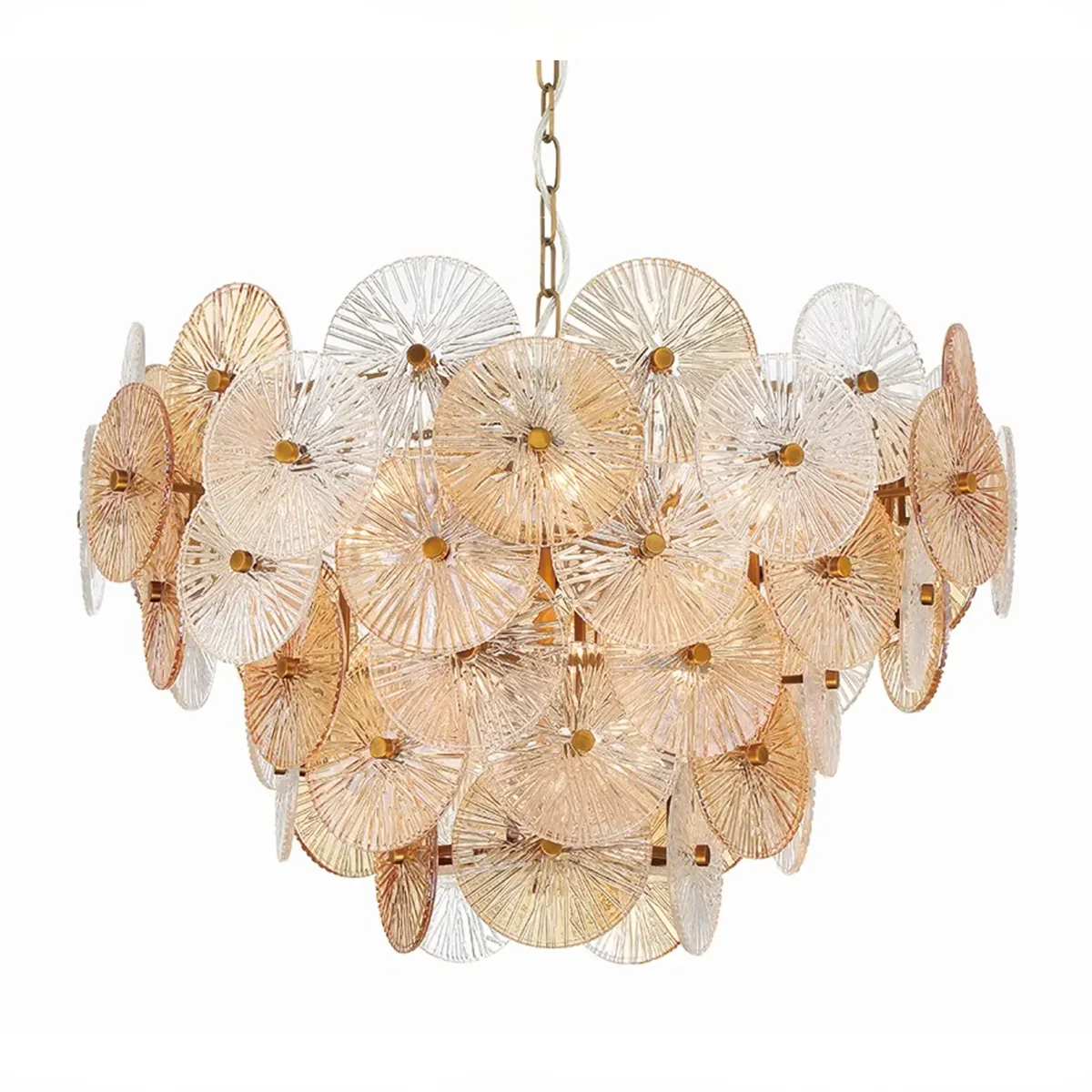 Exemplary glasswork is showcased in the grand, robust detailing of this piece. Handmade pressed ribbed glass imparts uniqueness, while intricate detailing and naturally tinted glass enhance its distinctive characteristics.