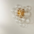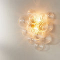 The Talial wall lamp is composed of 15 to 18 swirling blown glass spheres that appear to float lightly, like bubbles, around a metal frame, reflecting ripples through the textured surface. Designer July reinterpreted the classic glass sphere lamp to create this series of high-end pieces with a contemporary feel.