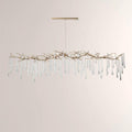 | Organically formed brass branches form this four-light horizontal chandelier dripping with hand-blown teardrops. |