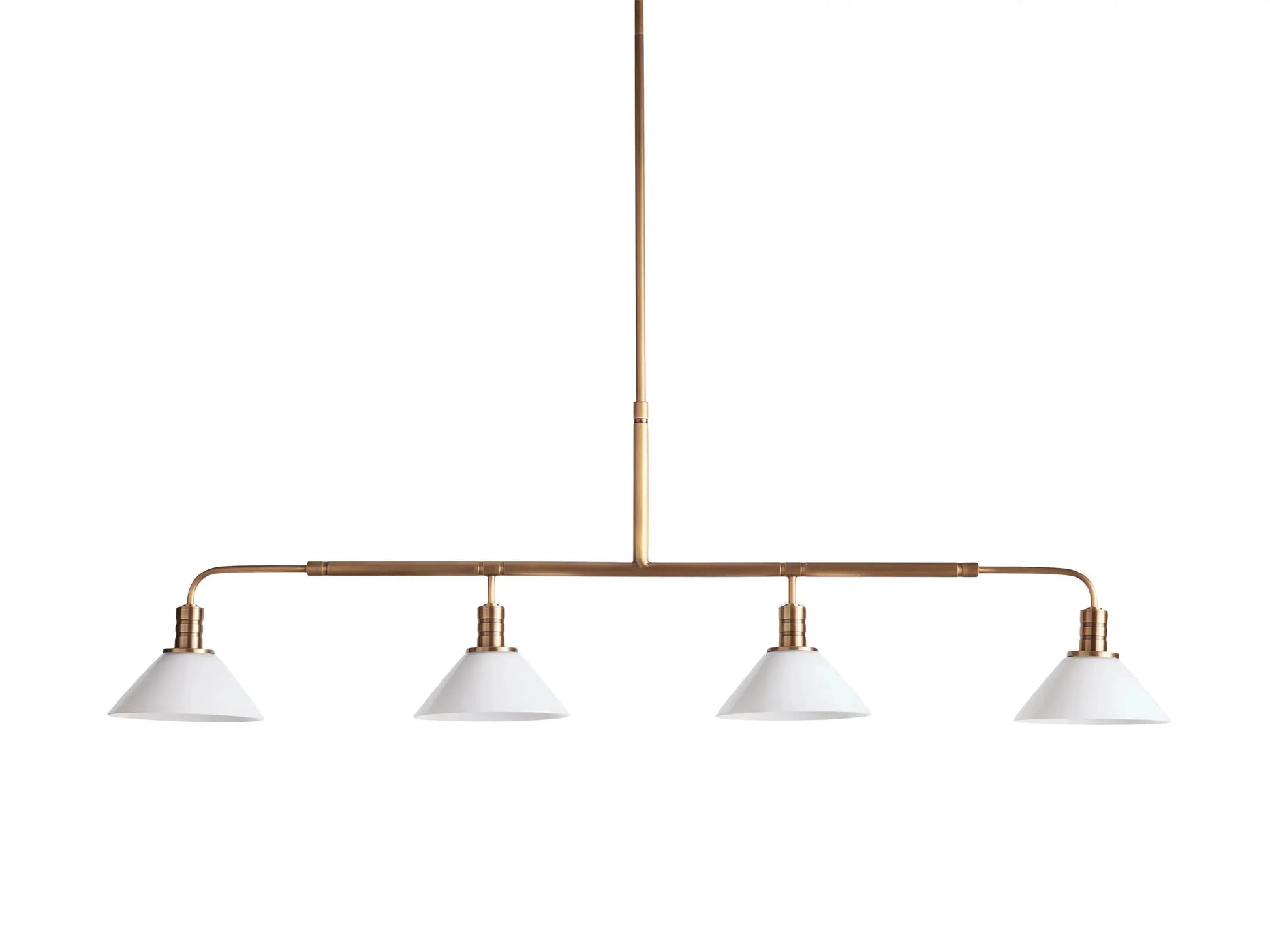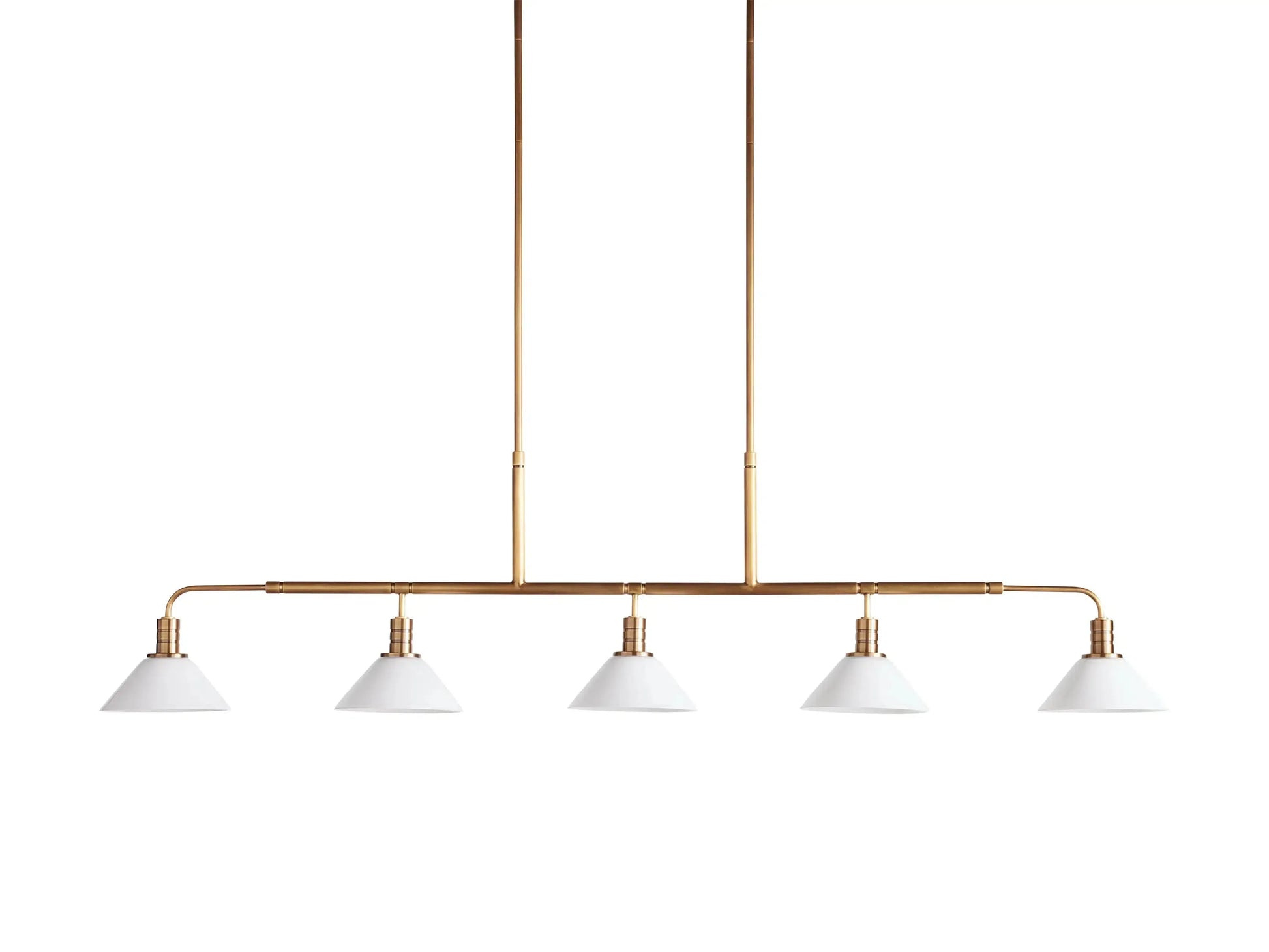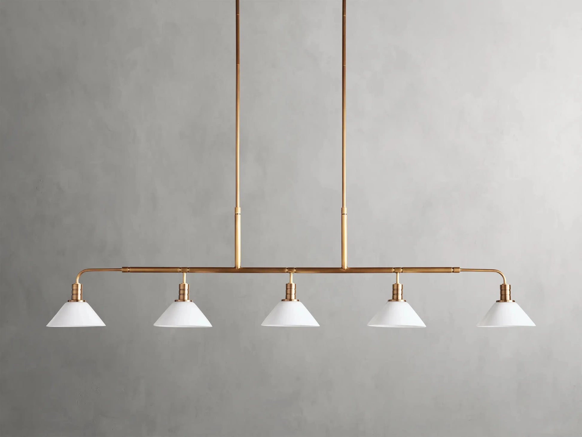 For example, let's say that you have a dining table with 60 inches in length. The chandelier should be between 30 (60 x 1/2) to 45 (60 x 3/4) inches in diameter or length (Same here 1/2 to 3/4 of the kitchen island length)