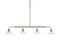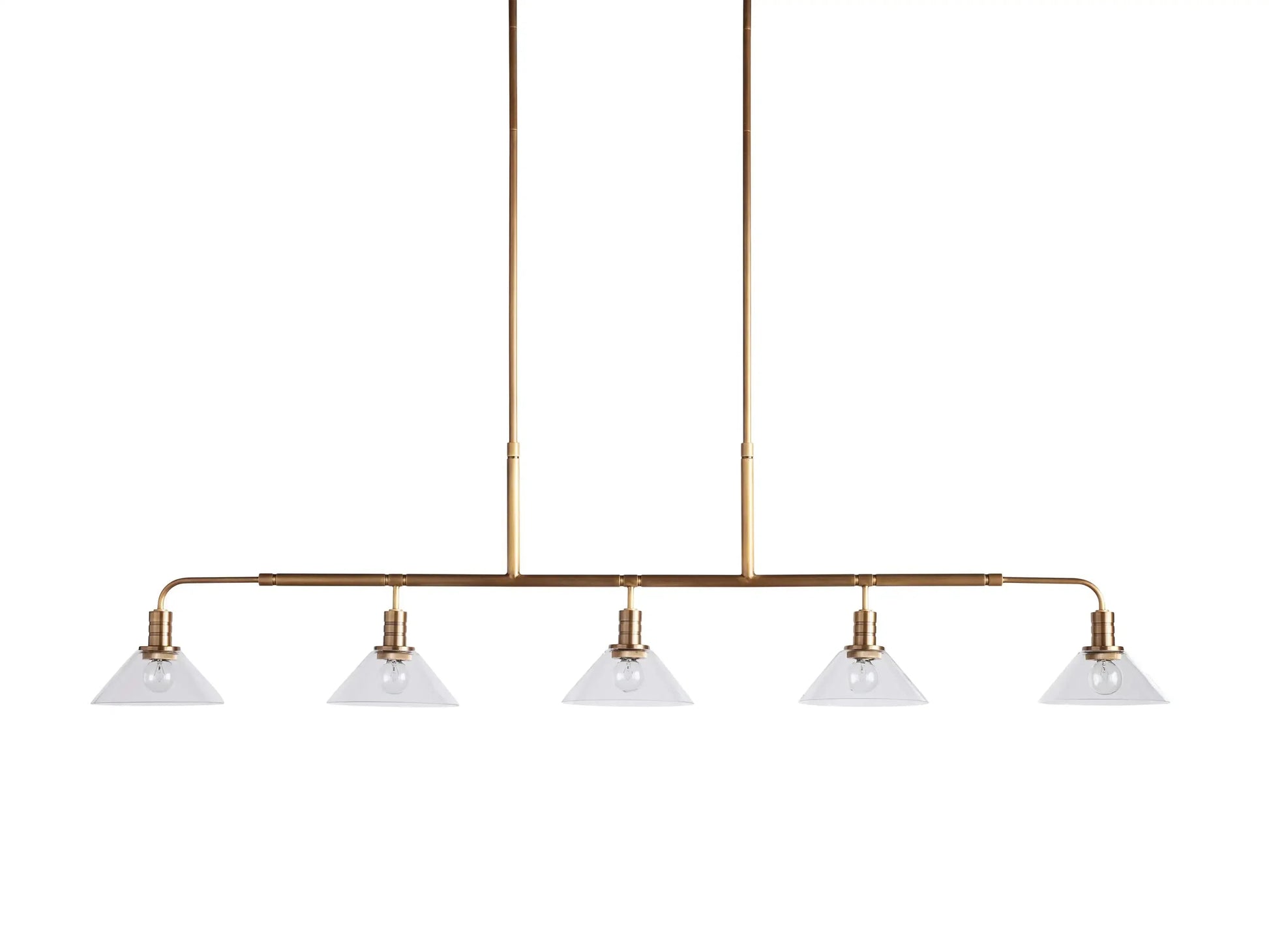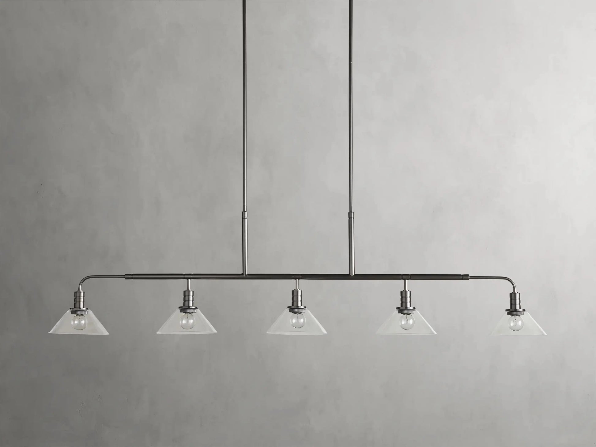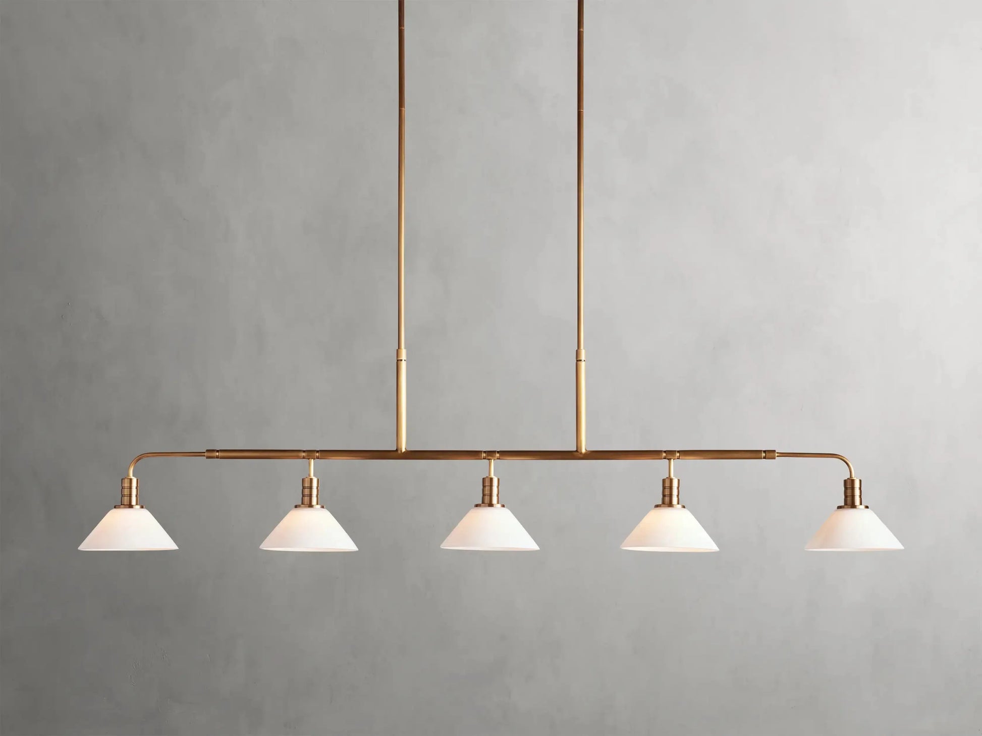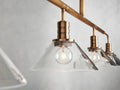 - Crafted from steel in either a brass or bronze finish with your choice of clear or milk glass cones.