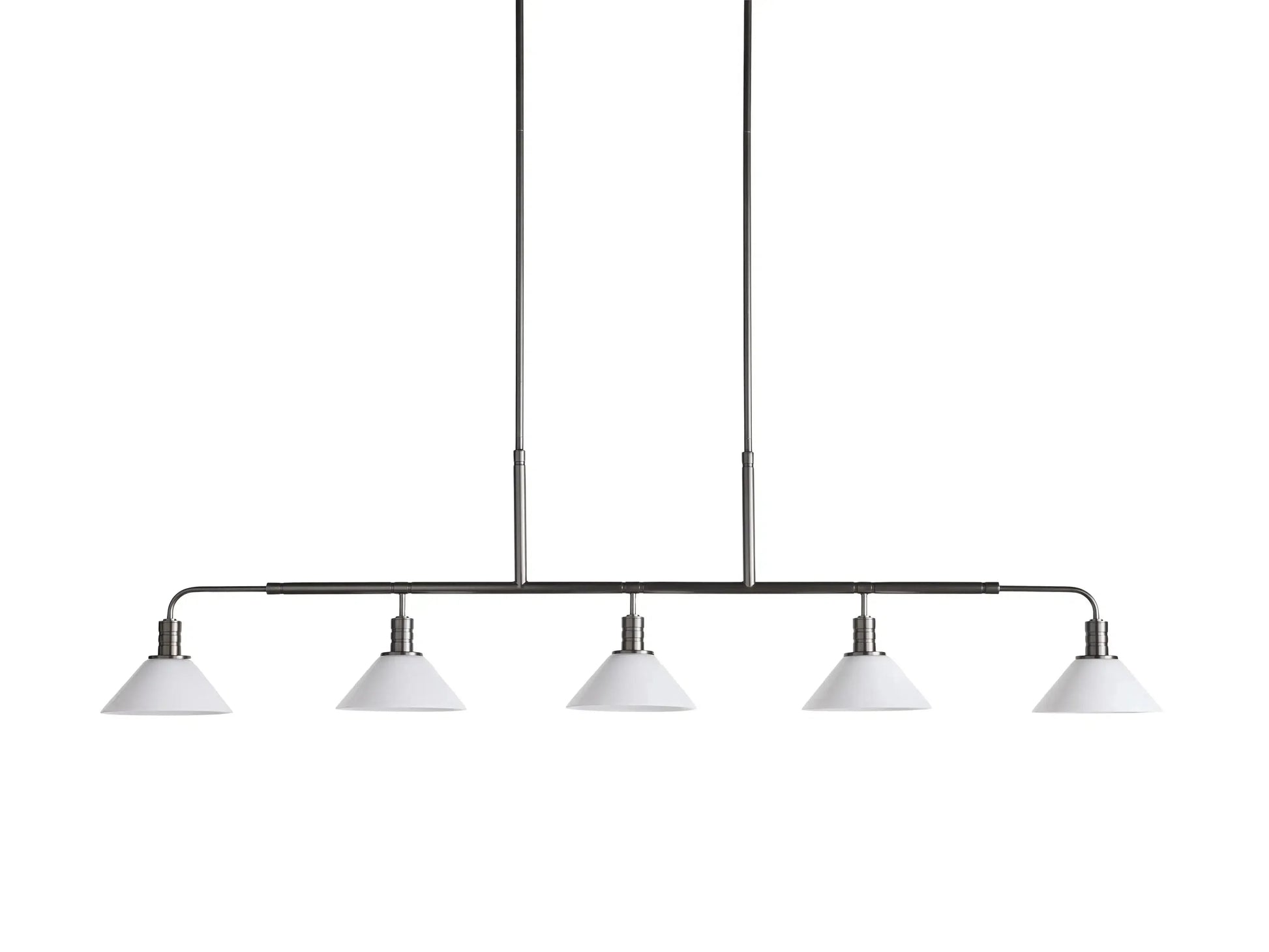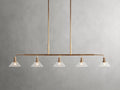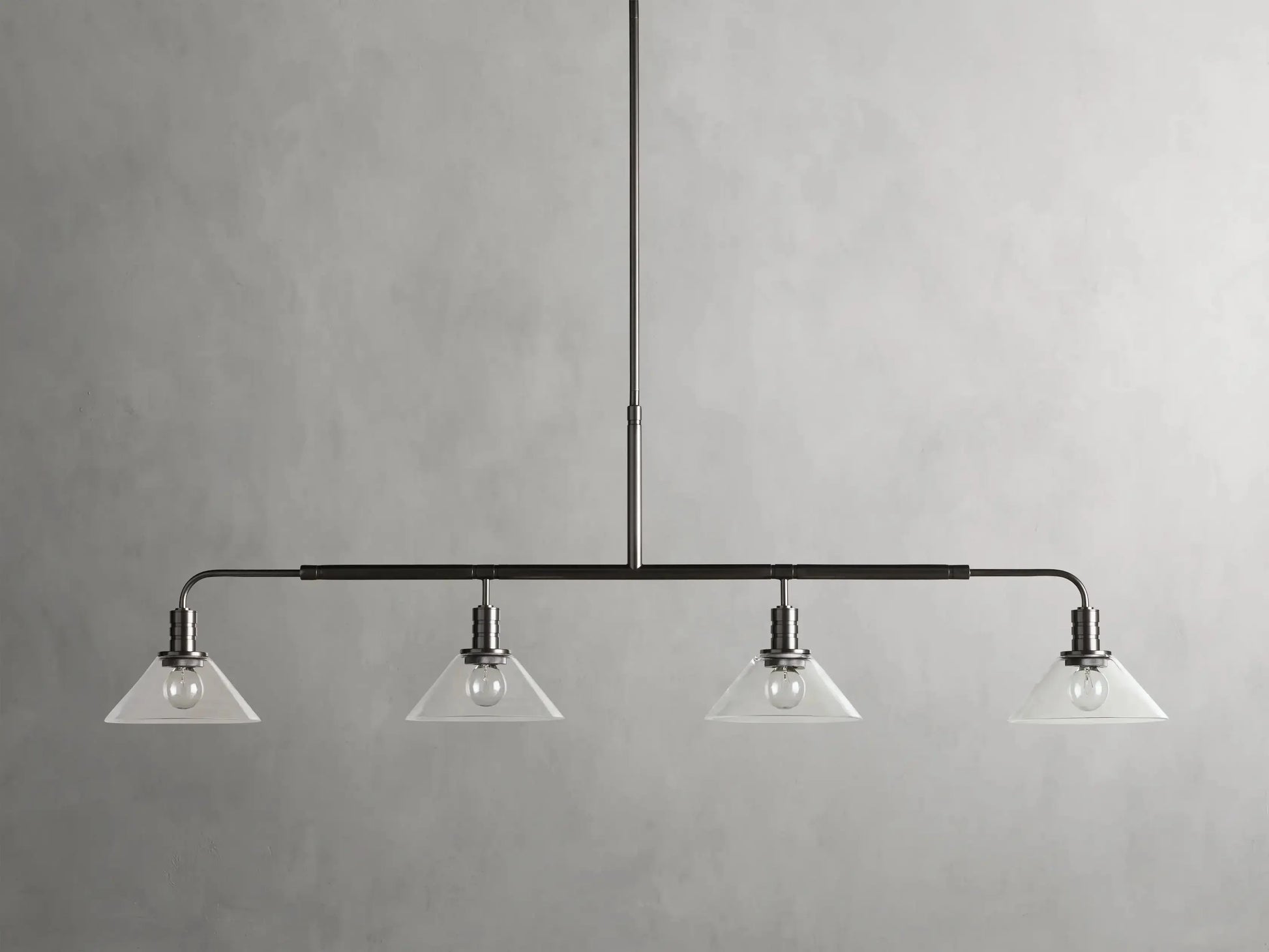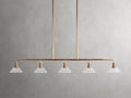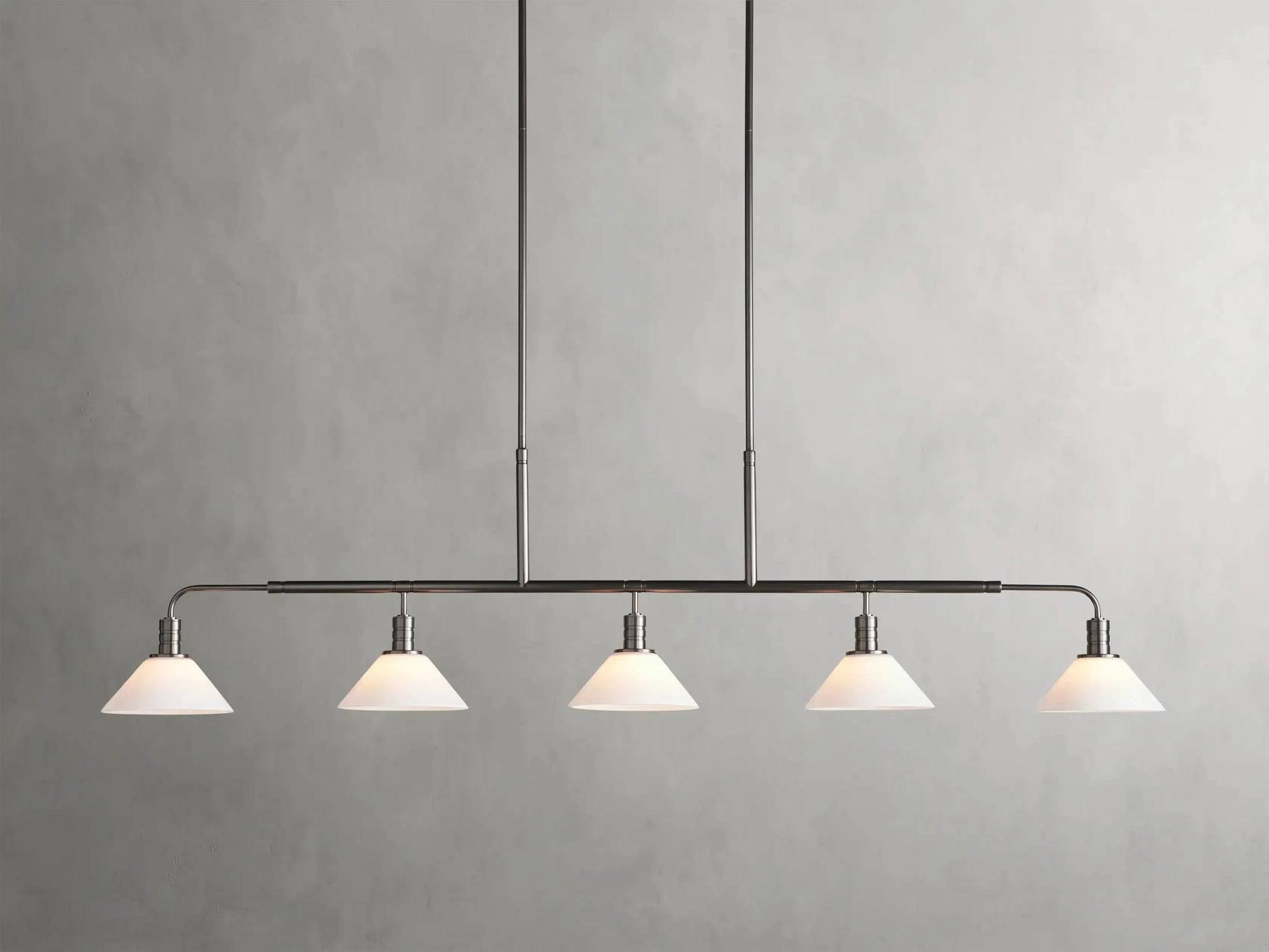 - Crafted from steel in either a brass or bronze finish with your choice of clear or milk glass cones.