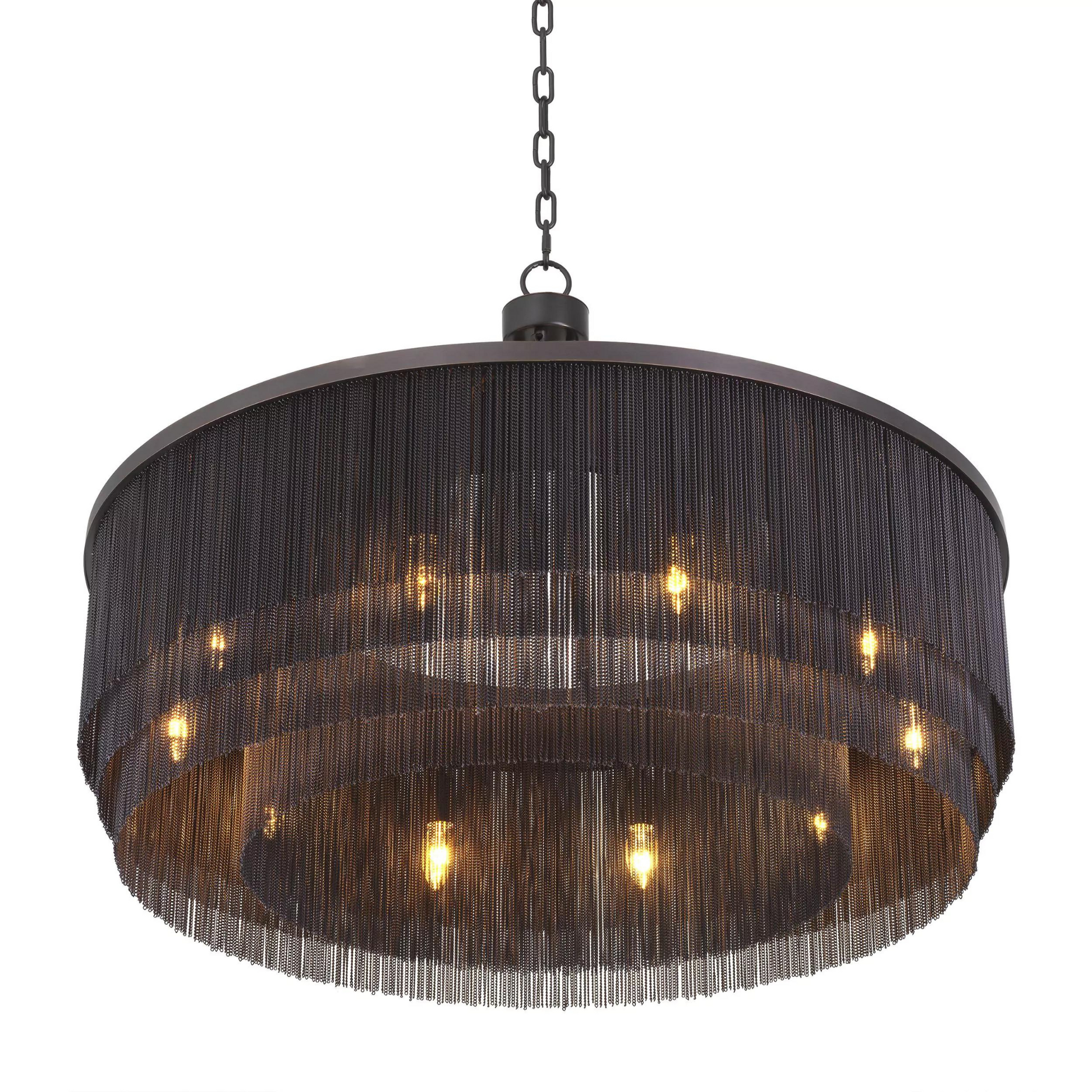 Description: Add a touch of glamour and extravagance to your space with the Tissot L Chandelier. Inspired by the fringe flapper dresses of the 1920s, this chandelier features four rows of thin chains, evoking the luxurious style of The Great Gatsby era. Perfectly suited for any modern or vintage-inspired interior, it radiates sophistication and elegance.