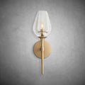 Experience the elegant beauty of the Tulipa Modern Grand Wall Lamp. Created by master glass designer Alison Berger, this collection takes inspiration from the blooming form of the tulip. Crafted from a solid block of crystal and hand-polished, the glass torch showcases the delicate contours of the petals. Its graduated thickness creates an atmospheric glow, perfect for creating a warm ambiance in any space. An understated brass stand anchors the fluid form, reminiscent of the stems that hold the blossoms in space. Elevate your interior with this exquisite wall lamp.