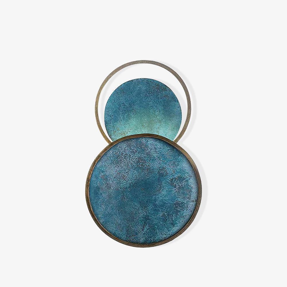 A glamorous object d'art designed by Vakkerlight, this magnificent scope will add a hypnotic and mesmerizing touch to a contemporary wall. Inspired by a round and shimmering satellite, it features two oxidized circles enclosing two exceptional round elements in oxidized, with a natural turquoise hue. This round decoration is opaque and LED illuminates the lamp from the side.