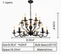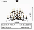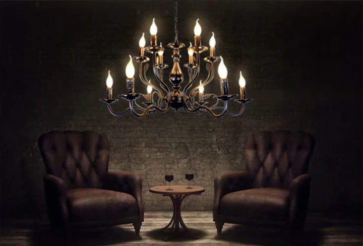 Multi Layer Iron Chandelier with Electronic Candles in Vintage Country Style for Living Room Cafe and Study