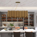 | It's a chandelier. It's a sculpture. It's both of these things and more. The Viol Collection Chandelier is the perfect fusion of sleek design and old-world flair. In fact, it's the perfect way to bring a touch of European color into any room. After all, it's hard to imagine a dinner party any more formal and refined. |