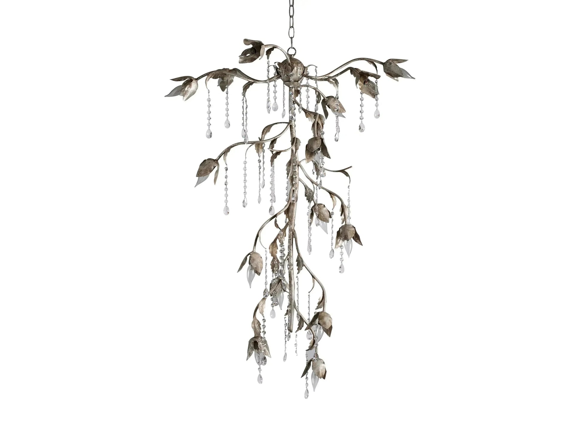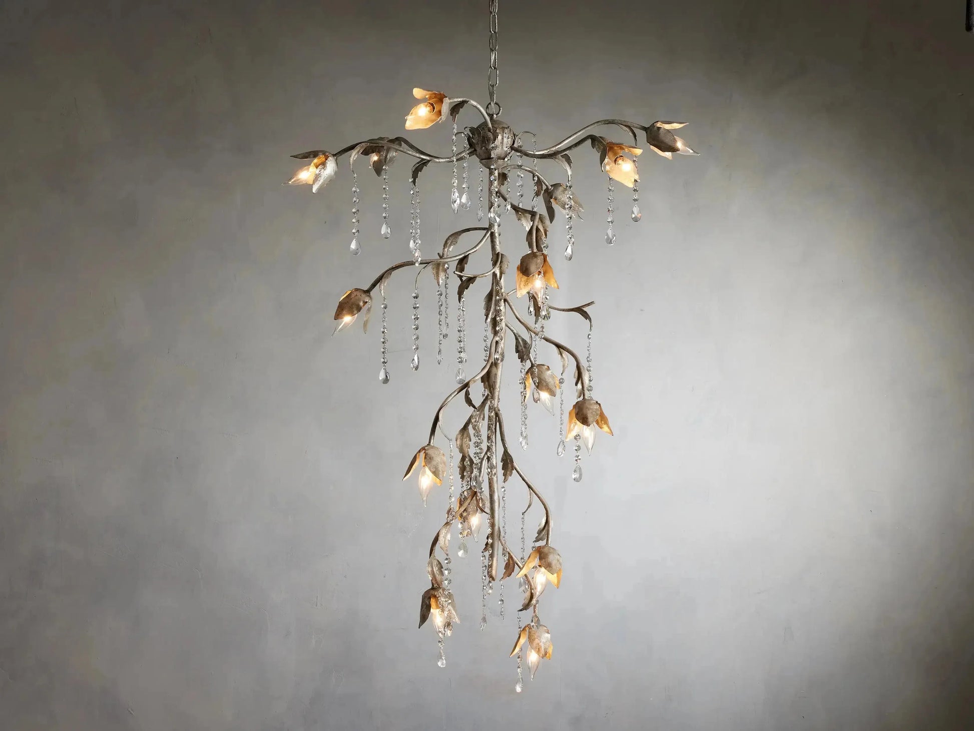 - Like freshly fallen rain on draped garden vines, our Viticcio Chandelier is hand-moulded by Italian artisans from solid iron. Floral flourishes are elegantly accentuated by a hand-applied silver finish, and hand-strung crystals dangle to scatter drops of light around your space.
