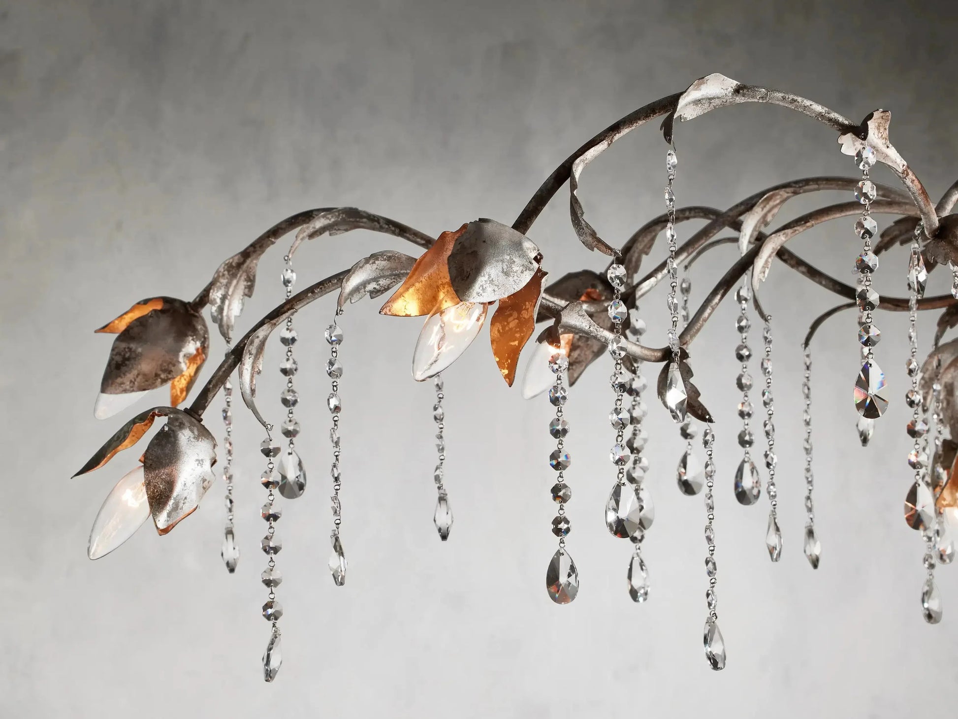 - Crafted by our artisan partners in Italy from hand-moulded iron, featuring a hand-applied silver finish and elegantly hand-strung, faceted glass crystals.