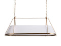 - Crafted from metal with a bronze plated or burnished brass finish and tapered linen shades.