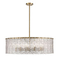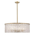 Gleaming gold metal offers an incomparable reflective quality to clear glass, adding a striking look to this exquisite light fixture. The Aimee Chandelier delivers glam individual clear textured glass panels that emulate melting ice, an extraordinary effect with dramatic impact in a foyer, dining room, or nook.