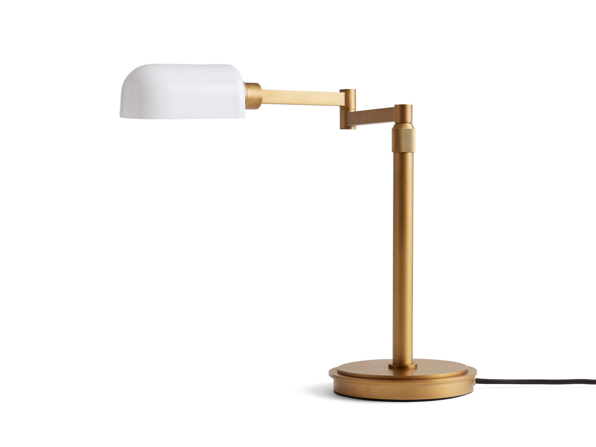 - Swinging arm allows you to adjust the light to your desired position. Adjustable arm height ranges from 36"-53".